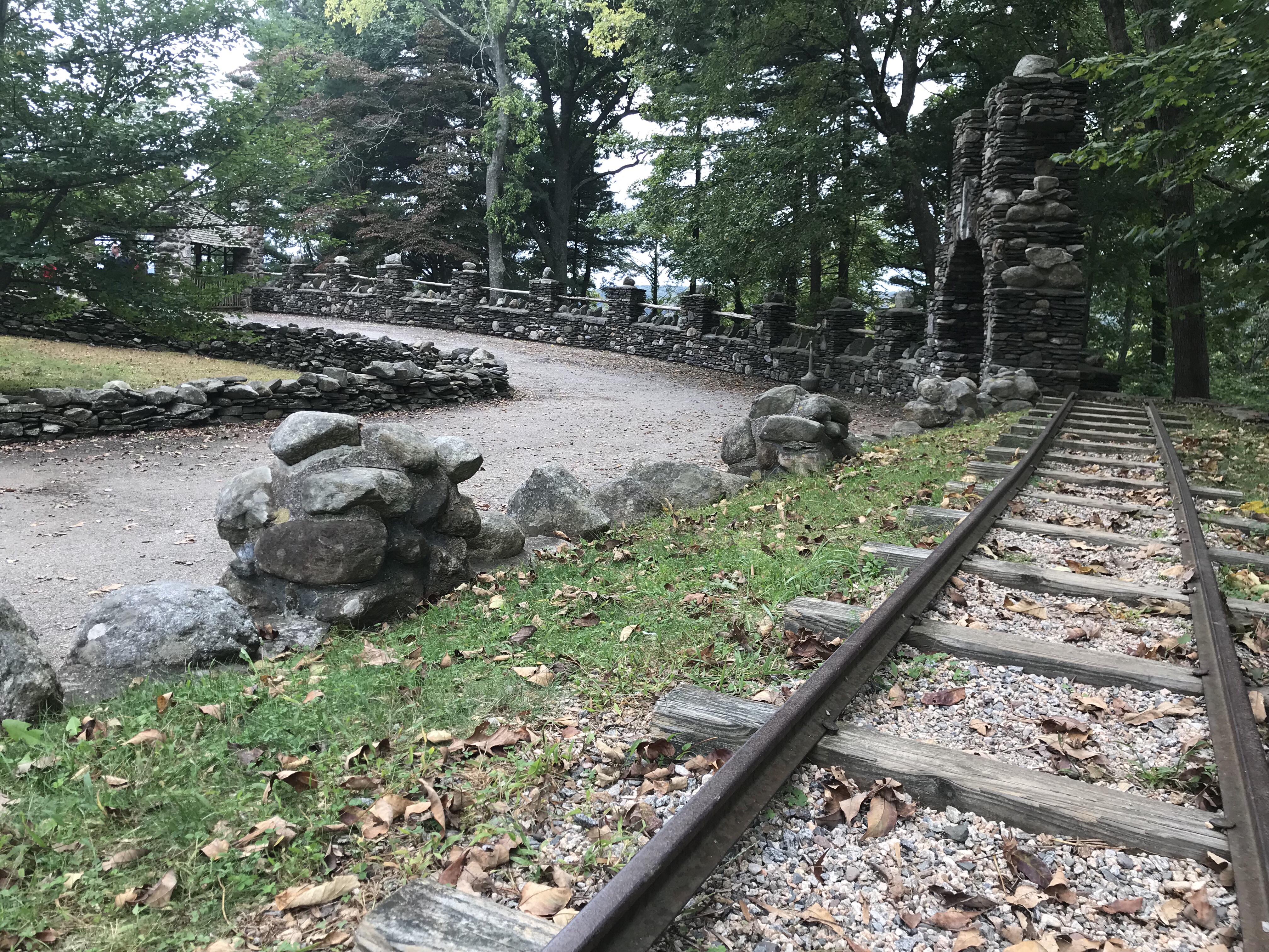 Within an hour and a half, I trailed around the massive structure three times. Snapping pictures via iPhone, mostly by maneuvering angles on stone edging and foliage (even some railroad tracks Gillette specifically ingrained on his property), I finished scouring the exterior extensions. Those extensions incorporated many elements of entertainment and relaxation for this artist-architect and his frequent guests.