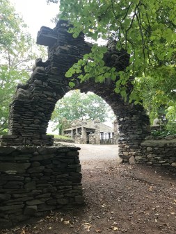 Since the museum was, and currently is, closed for the season and the interior is currently under renovation, I’ll provide the breakdown of the place: 3 stories high with a tower, 24 rooms, 14,000 square feet, and the entire foundation, including the pathways surrounding the Seventh Sister and the woodlands. It’s constructed of wood, cement, and local Connecticut field stone, with a steel framework. And that’s just the outside.